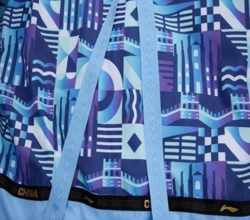 面料方面,采用科技感轻薄材料,触感亲肤细腻,呈现柔和珠光质感。填充物则采用高蓬松度的拒水鹅绒,满足冰雪运动场温度低、湿度大等自然环境挑战带来的极致保暖性要求。出场服内里巧妙使用中国、意大利地标建筑元素,采用满印渐变几何图样,呈现冰雪的晶莹质感,还原赛场的冷冽氛围,以细腻的细节设计,实现中意文化交流与体育精神的深度融合,冰雪交融,共筑未来。