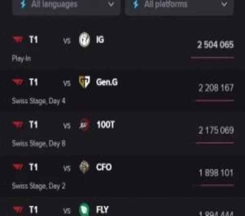 电竞体育10月24报道 外媒统计S15全球总决赛至今海外峰值前五的比赛均有T1