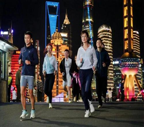 五星炫跑吧成员和北外滩高颜值夜跑团,从中国邮政储蓄银行上海分行营业部出发进行一段五公里左右的夜跑训练。他们中的大部分人都将参加11月23日举行的2025虹口10公里精英赛,大家借着此次机会提前踩点、热身备战。