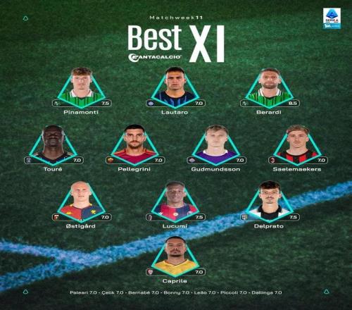 北京时间11月11日,意甲官方公布了联赛第11轮的最佳阵容,劳塔罗、洛伦佐-佩莱格里尼、萨勒马克尔斯以及贝拉尔迪入选。