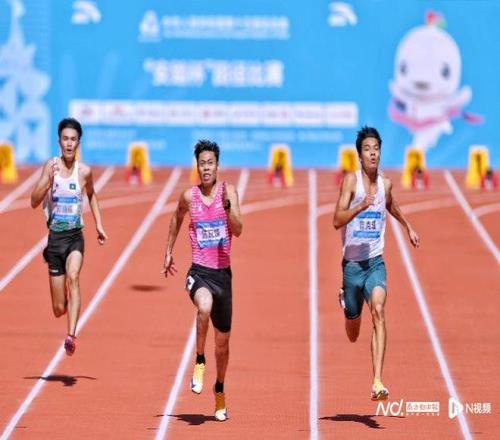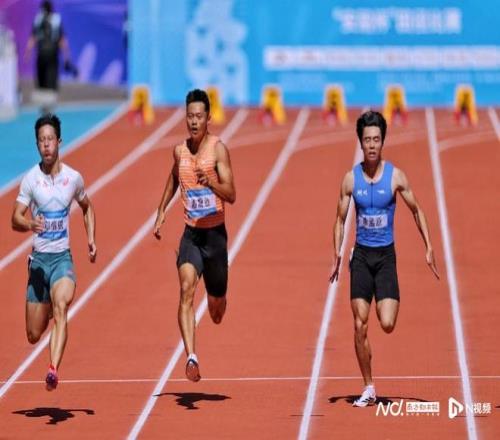 广东队陈冠锋跑出10秒35,以小组第三晋级复赛。