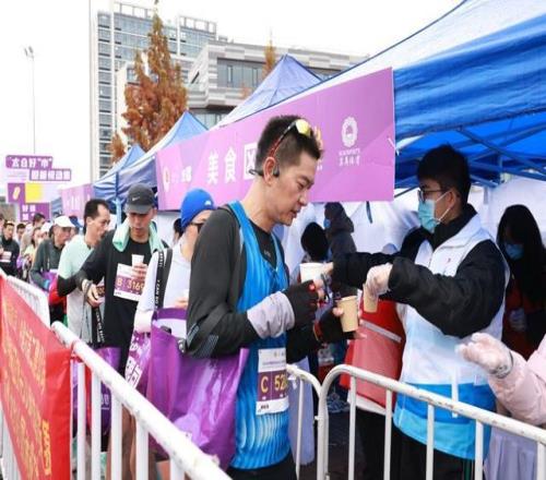 在终点区域,完赛包、奖牌、饮料被依次送到跑者手中,一声声“辛苦了”“恭喜完赛”的问候,给在严寒中拼搏的跑者送去暖意。