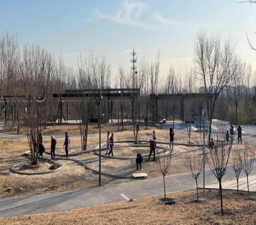 不过,在公园里设计赛道,源于一次灵光乍现。2021年底,王维琦所在的团队承接了温榆河公园景观设计项目。“当时我设想在山坡上做大滑梯,让这里变得更加有趣。但是后来我发现滑梯与这一区域的特点不太符合。”那段时间,王维琦一直在琢磨,怎么能在不破坏景观氛围的前提下,增加区域的互动性和趣味性。