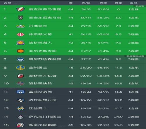 西部最新积分榜