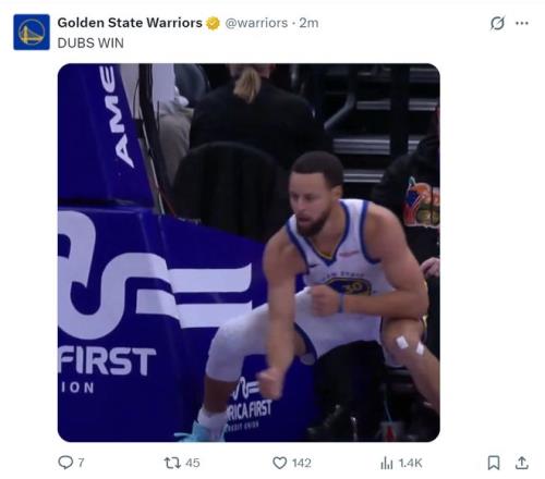 库里再一次又在客场跳舞了,这场比赛勇士8人上双而且全队命中23个三分球非常恐怖,库里的开心溢于言表。