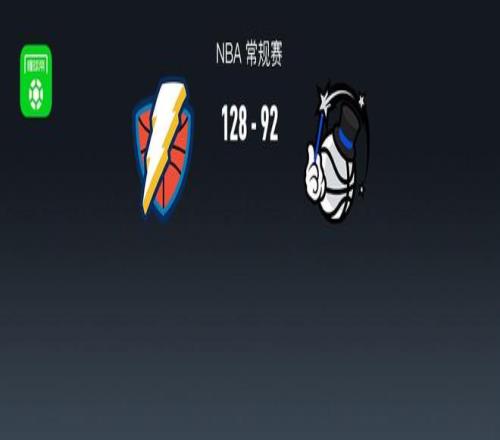 第四节雷霆以赛亚-乔拿下11分,魔术诺阿-彭达拿下8分,最终雷霆128-92战胜魔术