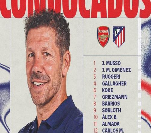 马竞公布欧冠战阿森纳大名单:小蜘蛛、格列兹曼领衔